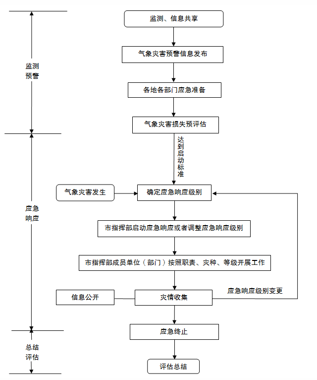 按照气象灾害影响程度、范围及其引发的次生、衍生灾害类别,市指挥部及有关部门按照职责和预案启动应急响应。